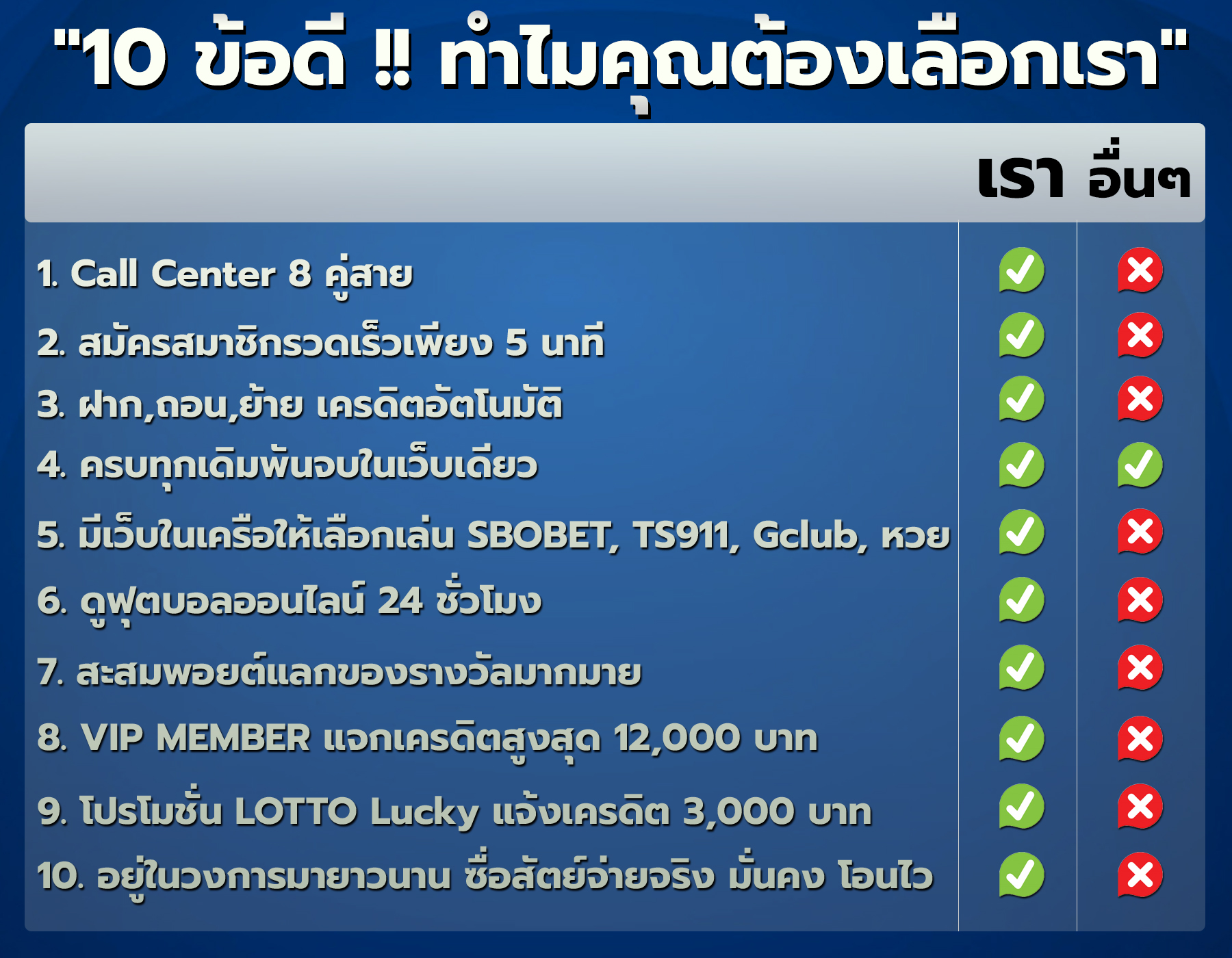 3. มีพนักงานดูแลลูกค้ากันตลอด 24 ชั่วโมง ไม่มีวันหยุด โทรปรึกษาได้ทุกเมื่อทั้งสมัคร ฝากเงิน ถอนเงิน